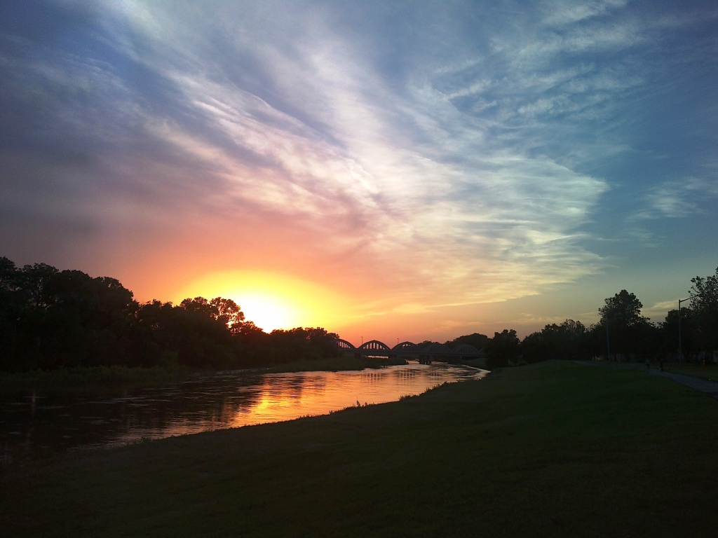 I’ve run under this cool trestle a gazillion times, but tonight was the first time a train was passing overhead. It was a bit unsettling to run under a bridge with a train moving by just a few feet above. The trestle floor is not solid; you can look up from underneath and see the underside of the cars passing overhead.