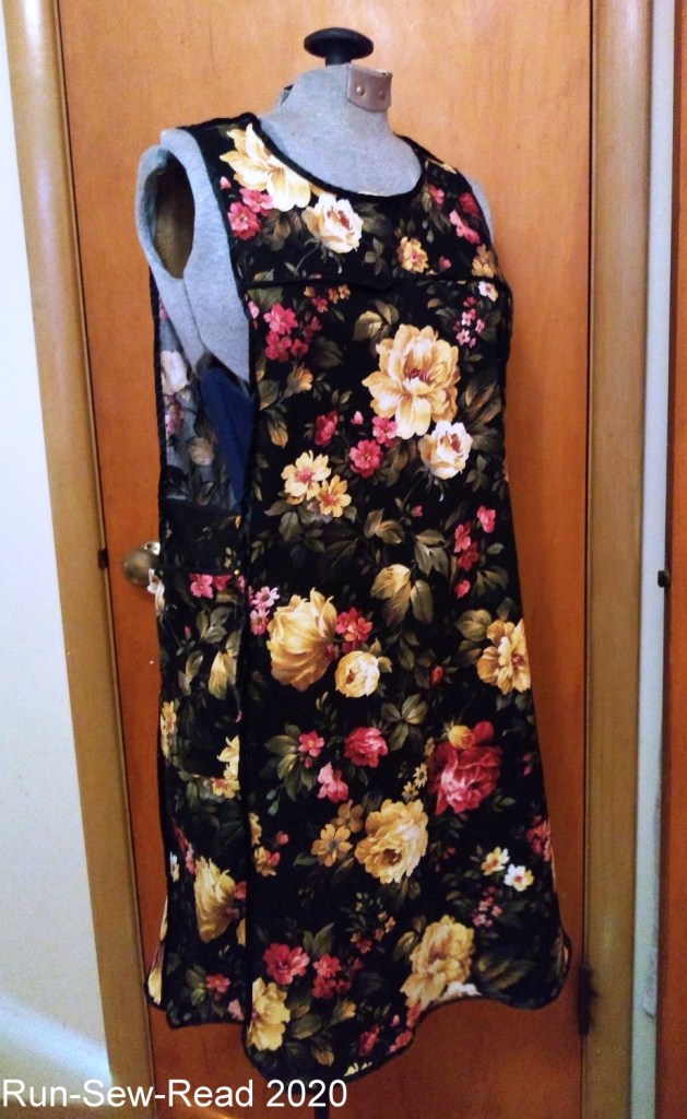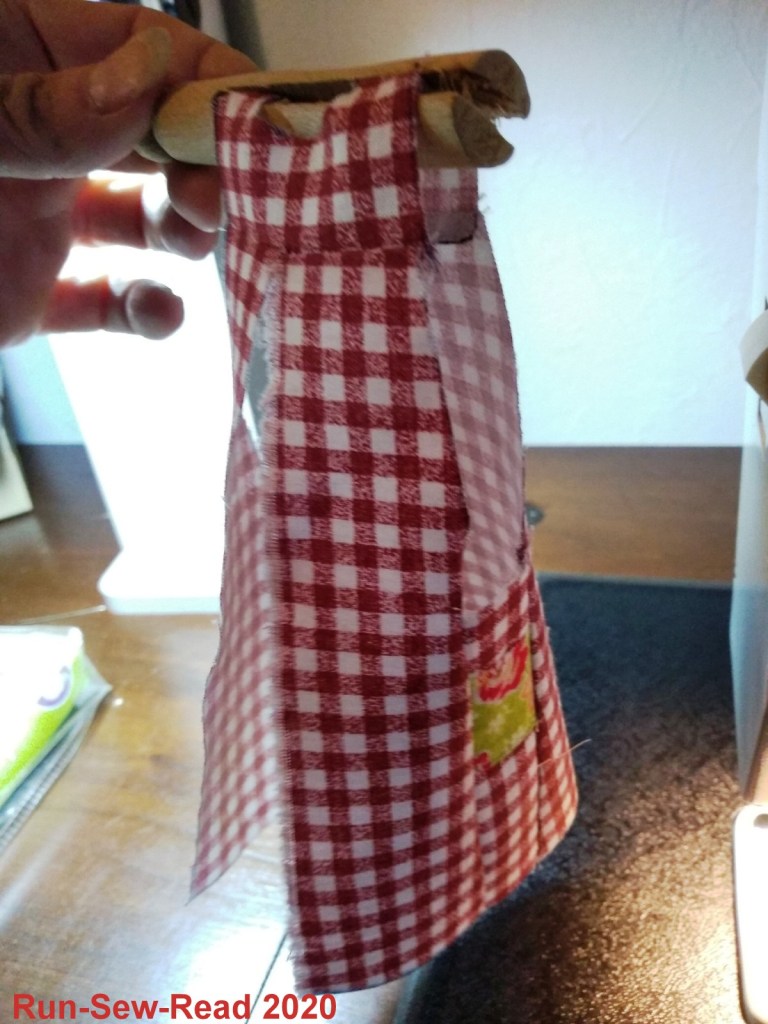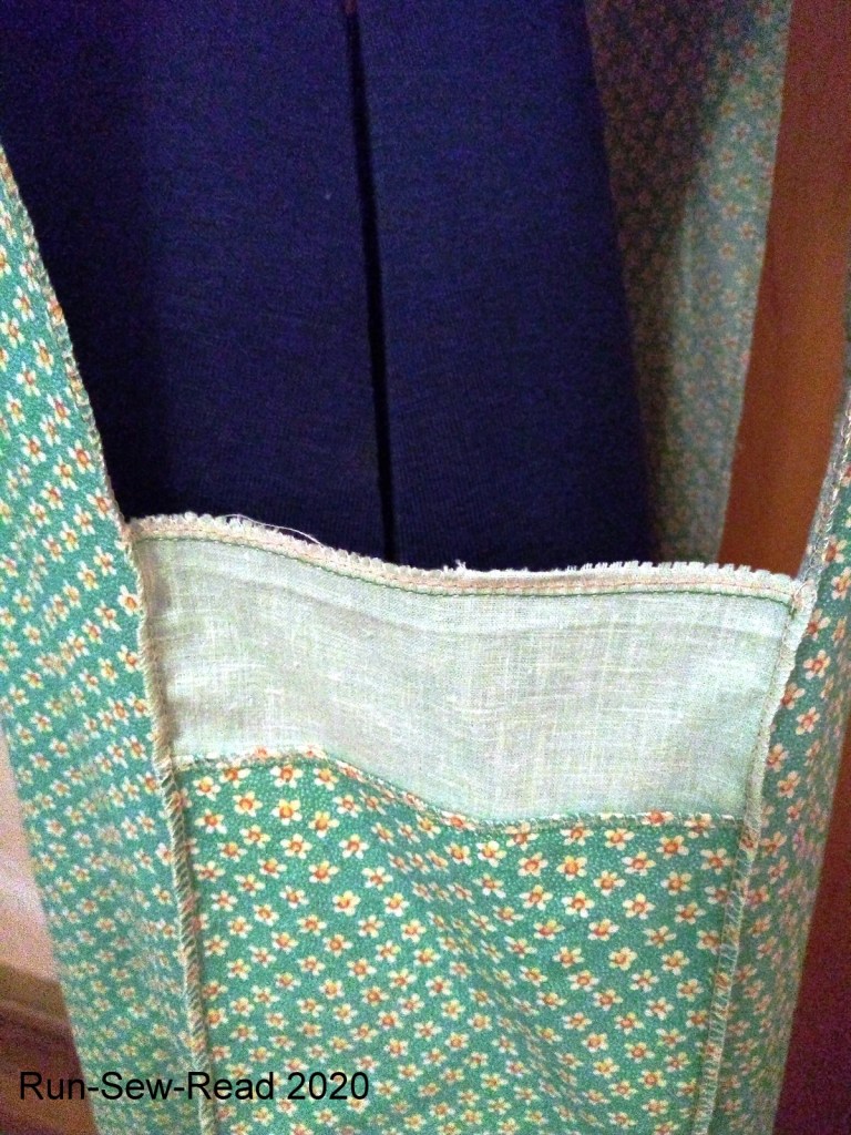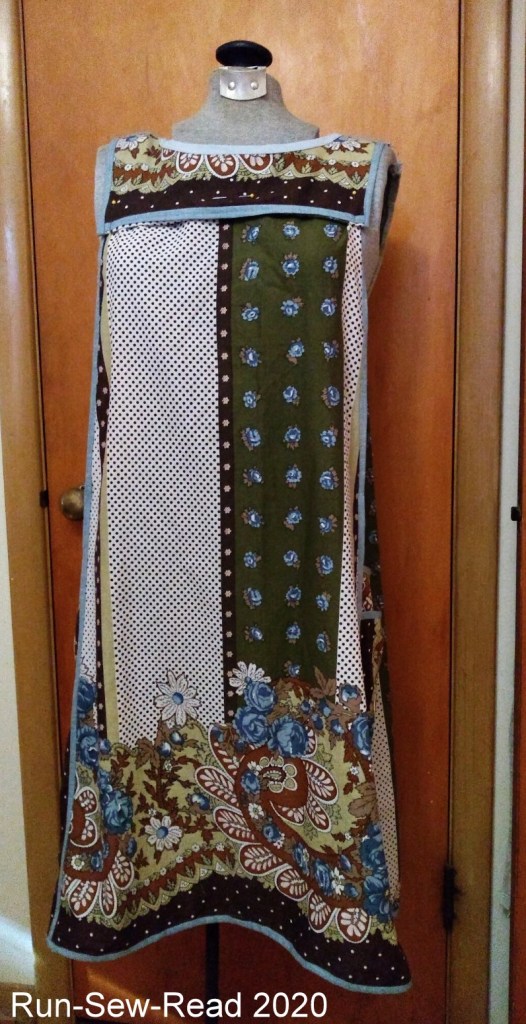 This was the most faithful to a 1920s version. The fabric is reproduction feedsack, and the apron is entirely constructed with the binding foot.