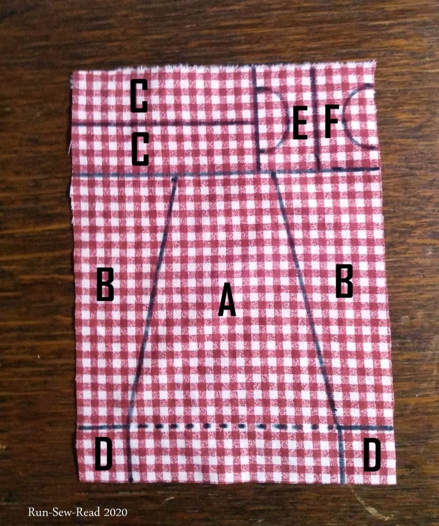 Nelly Don designed the apron to be sewn in one sitting, without having to remove it from the sewing machine. So now in Part 3 we sit down at the sewing machine and start constructing: